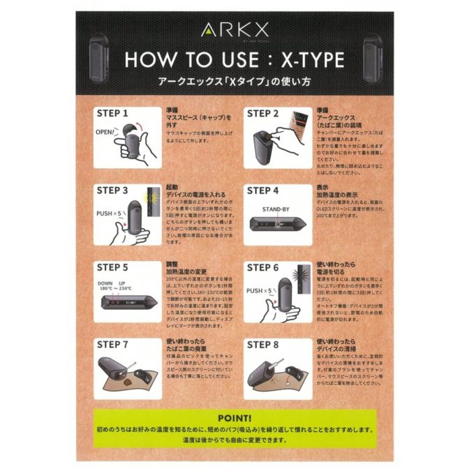 アークエックスたばこ葉専用に開発された電気加熱型デバイスです。